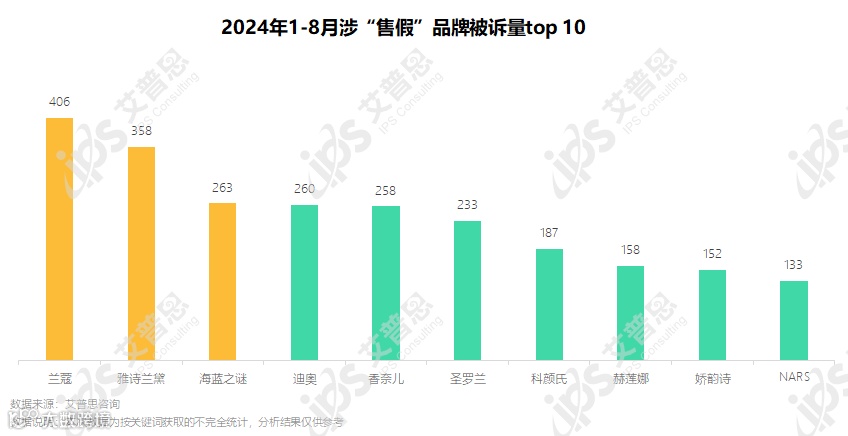 监测期内,售假问题成为美妆行业第三大投诉缘由,相关投诉达6997起,涉诉品牌中兰蔻、雅诗兰黛、海蓝之谜、迪奥、香奈儿等进口大牌居多。