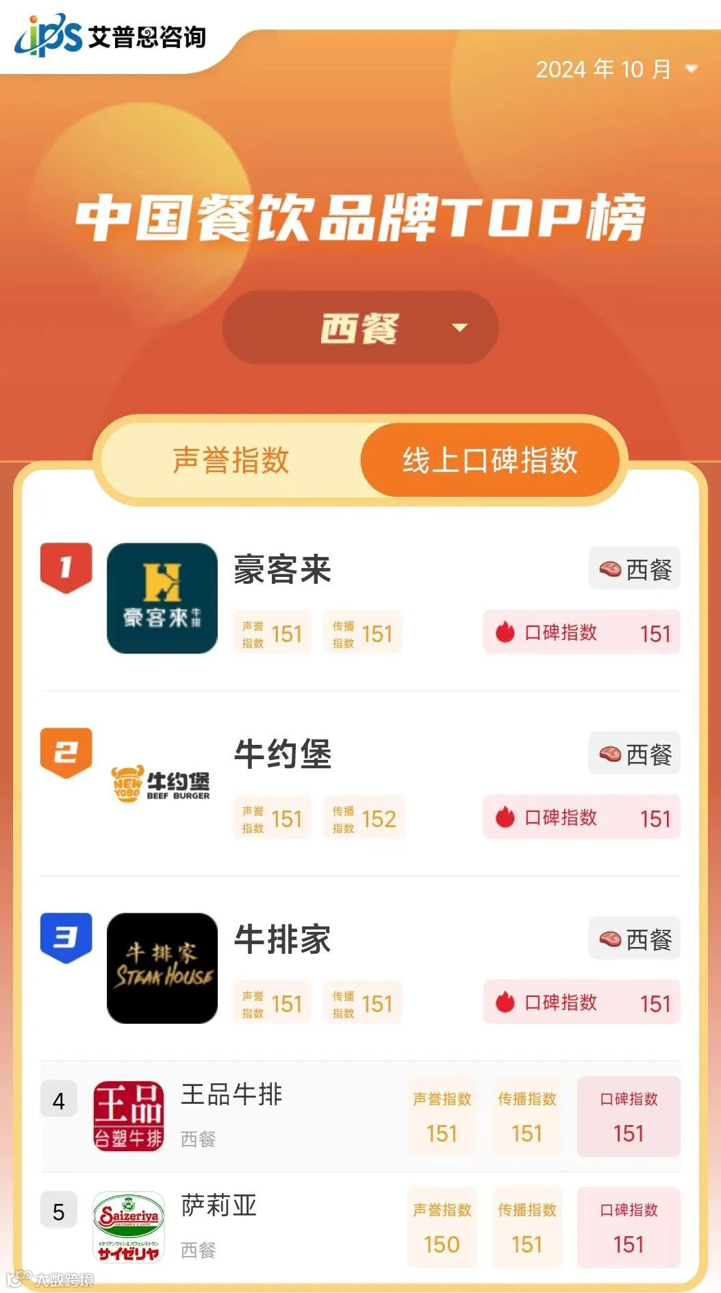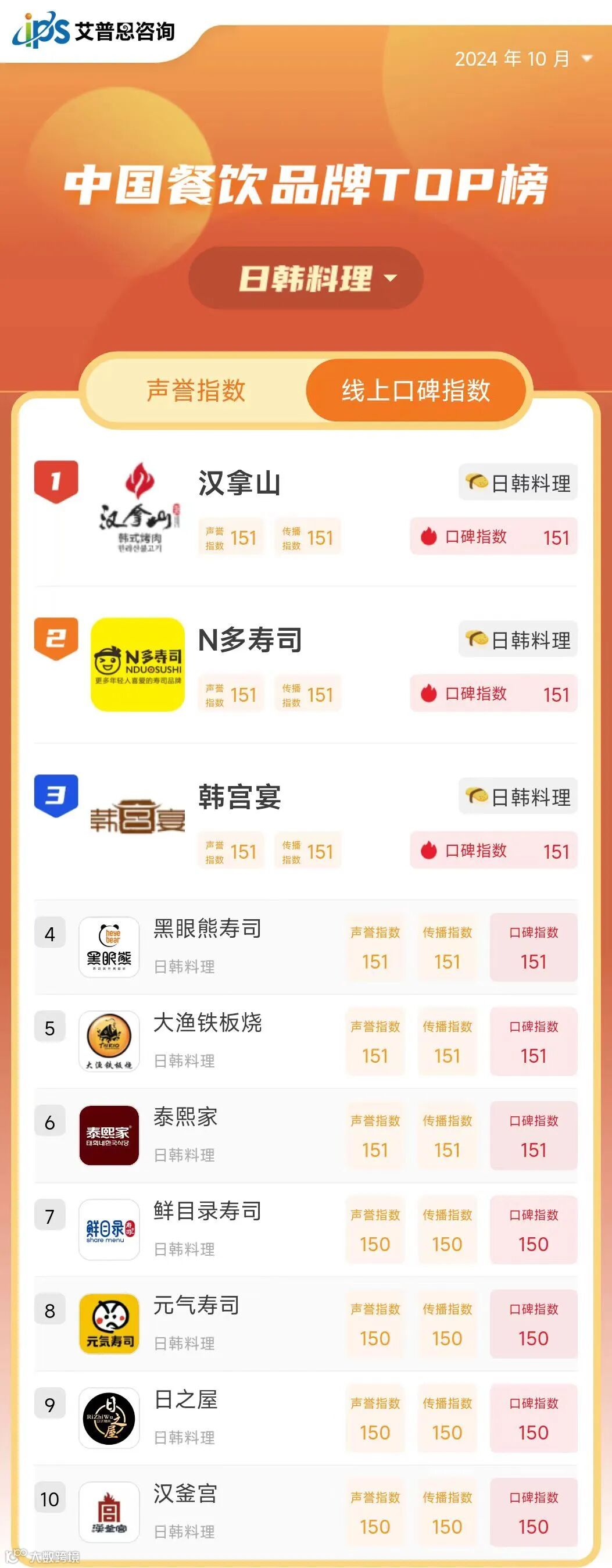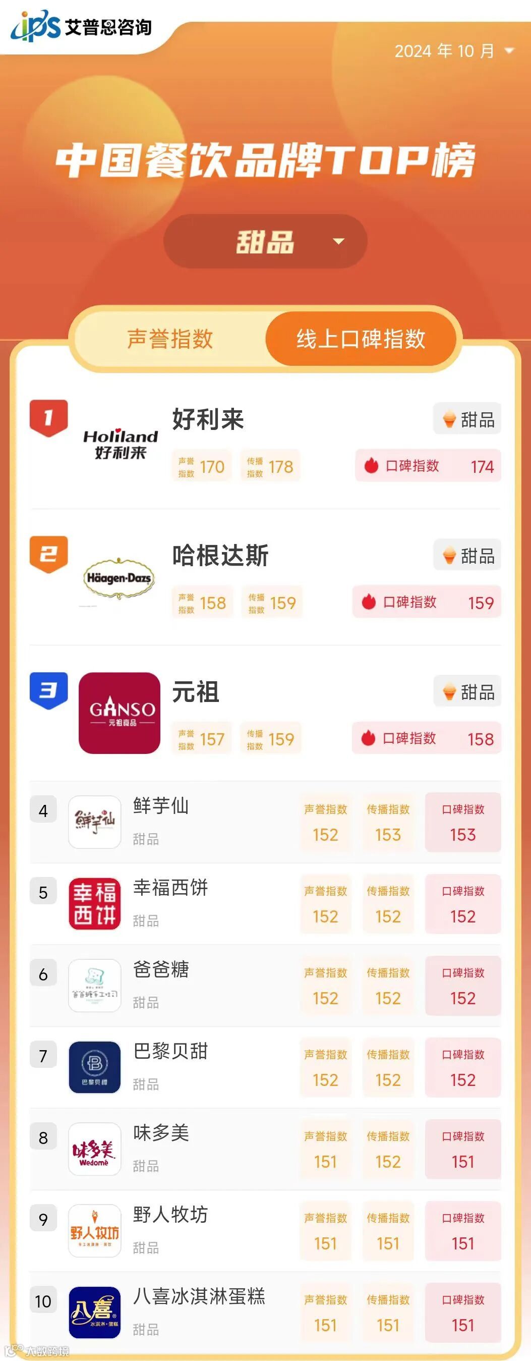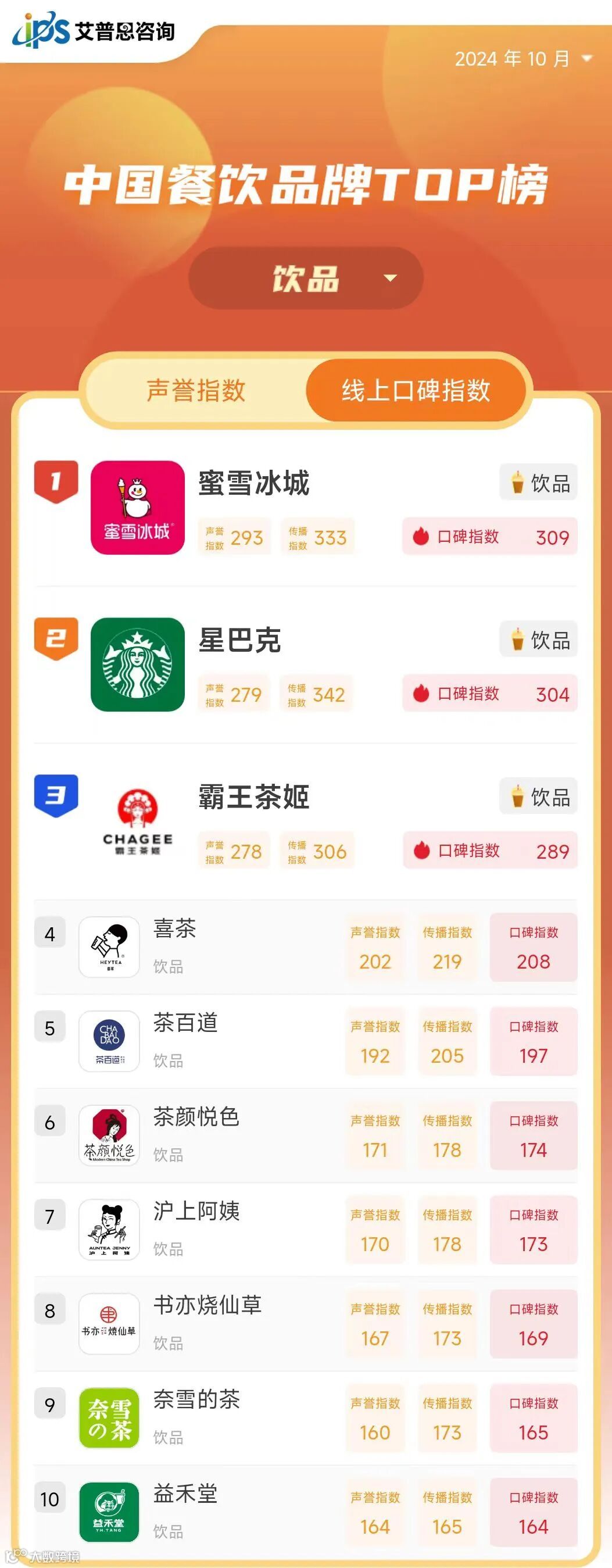 线上口碑指数TOP10