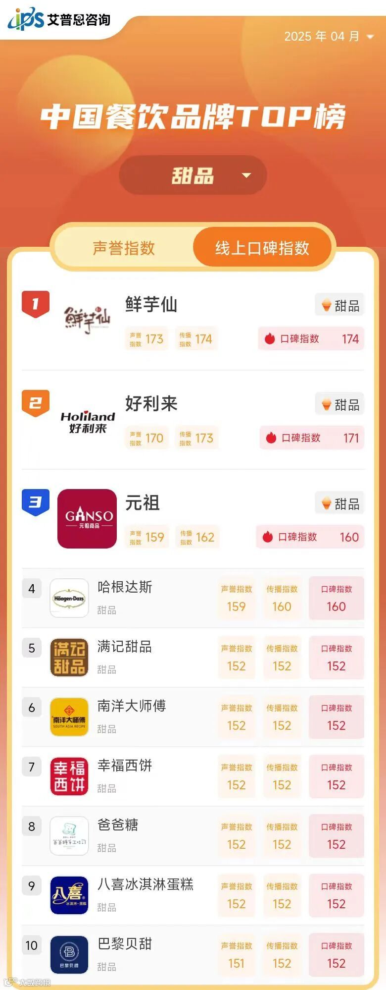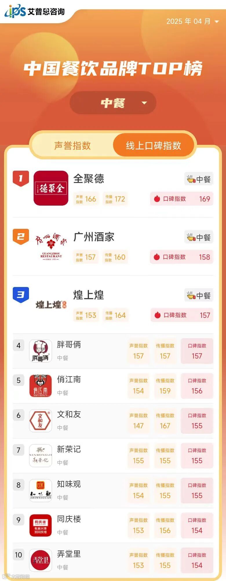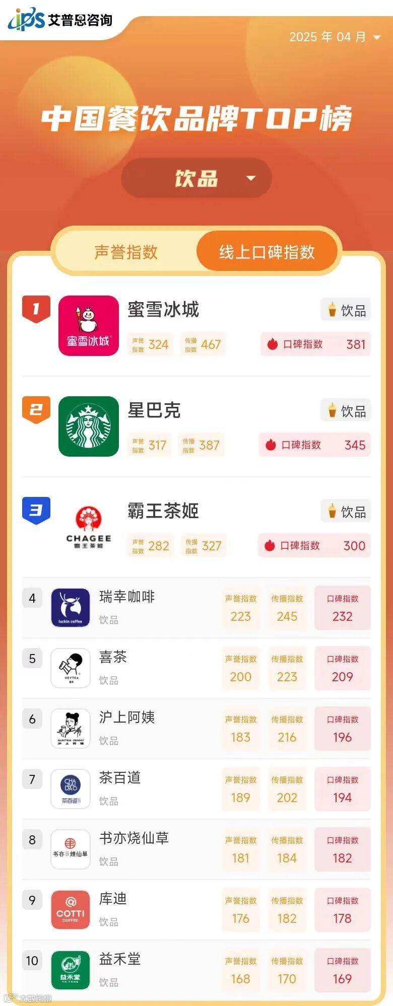 线上口碑指数TOP10