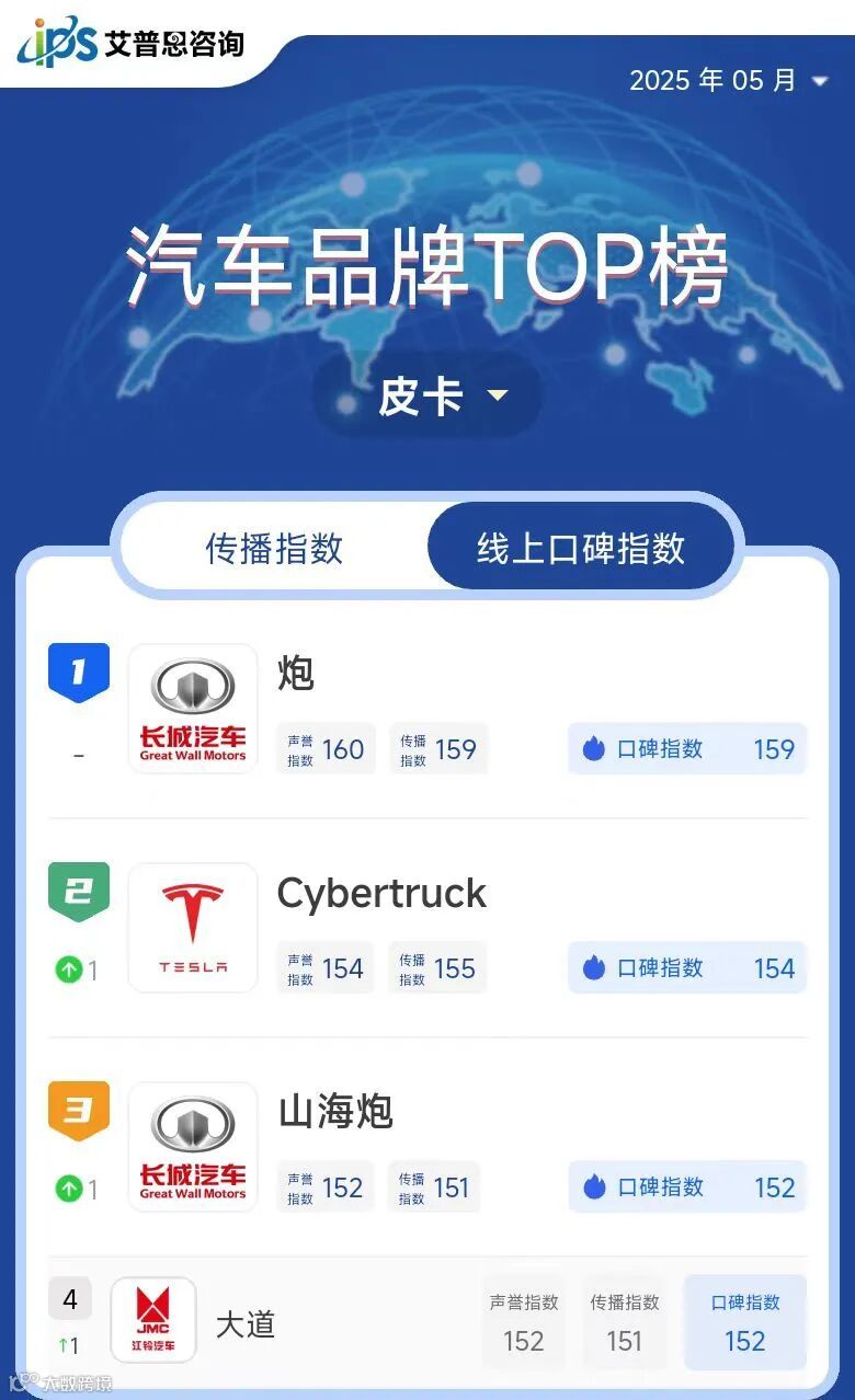 皮卡线上口碑指数TOP10