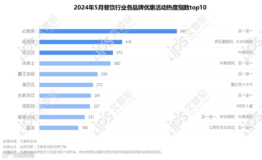 图1.2024年5月餐饮品牌优惠活动热度指数top10