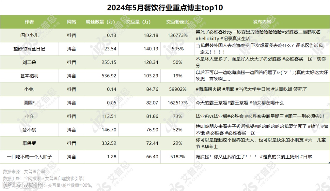 图4.2024年5月餐饮行业重点博主top10