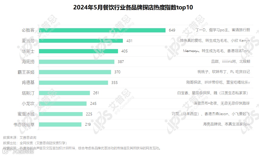 图3.2024年5月餐饮行业各品牌探店热度指数top10