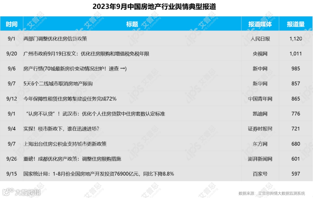 以上内容节选自《艾普思咨询:2023年09月房地产行业舆情监测报告》(全文共14页,约3,200字)。