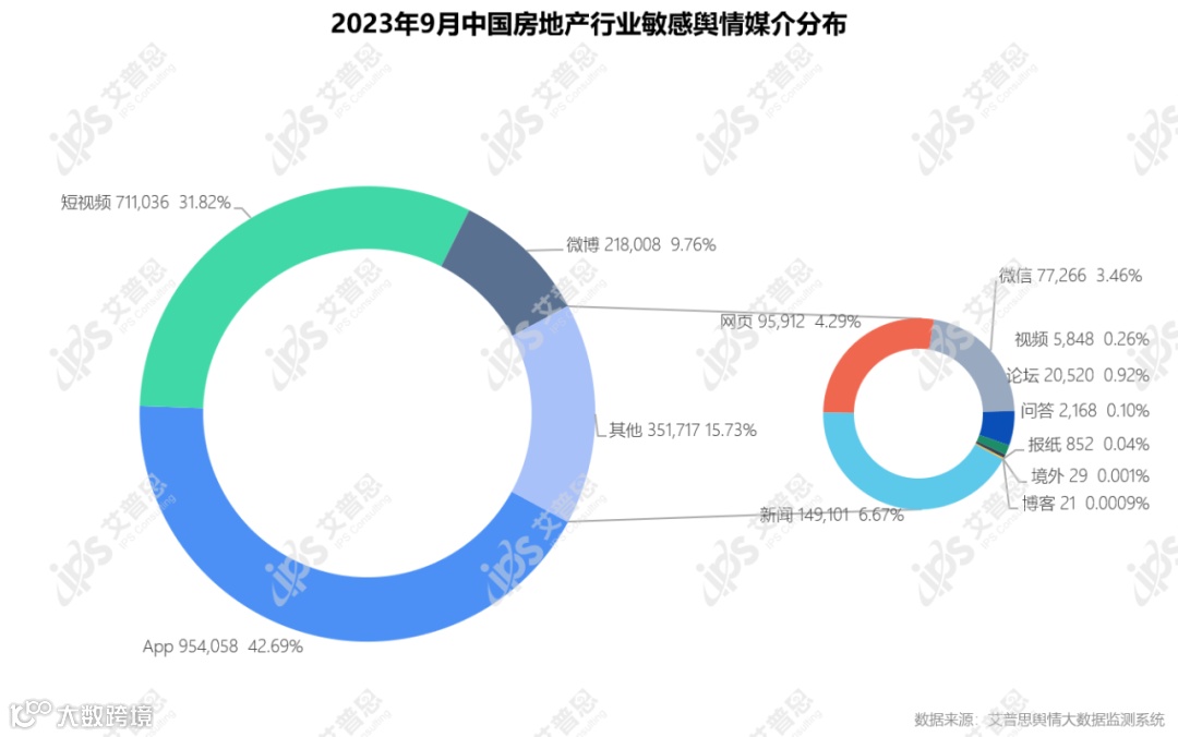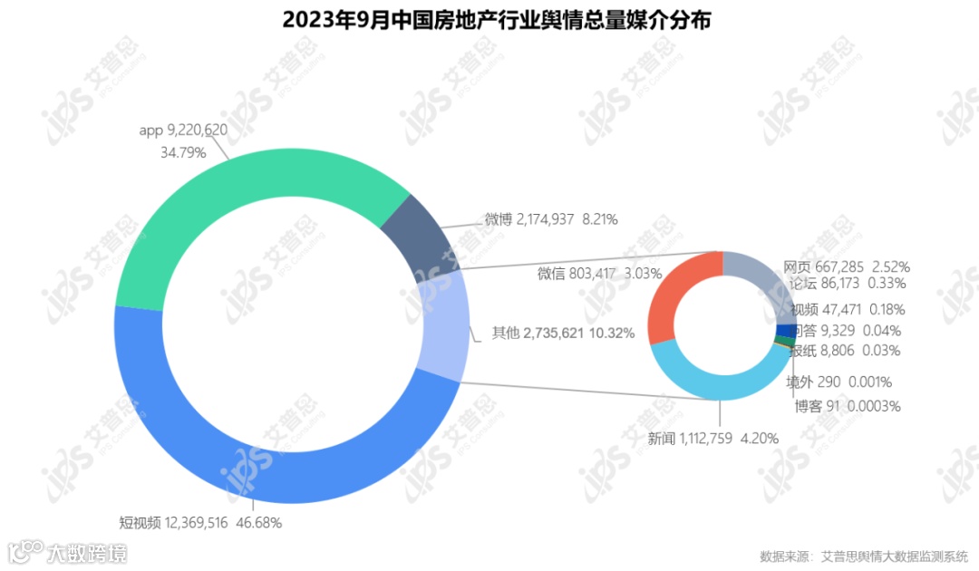 图3:2023年9月中国房地产行业舆情总量媒介分布