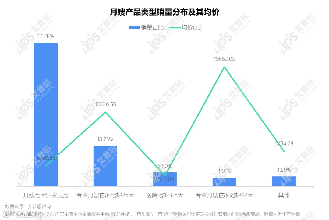 图4:月嫂产品类型销量分布及其均价