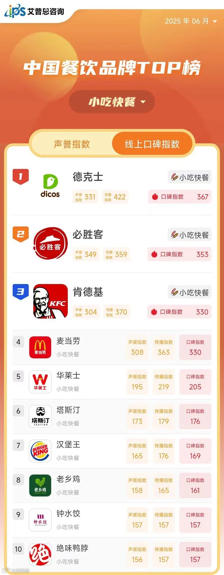 继《中国房地产品牌线上口碑指数排行榜》之后,我们发布了原创指数“艾普思品牌线上口碑指数”的又一应用榜单——《中国餐饮品牌线上口碑指数排行榜》。国家统计局发布的数据显示,2024年全年,全国餐饮收入55718亿元,同比增长5.3%,餐饮消费潜力持续恢复。与此同时,据红餐网数据显示,2024年有近300万家餐饮门店关闭,创下历史新高。行业整体收入实现增长,门店关闭的态势却不断加剧,反映出当下餐饮市场竞争已经进入白热化阶段。榜单旨在依托互联网文本大数据分析技术,助力餐饮企业在后疫情时代精准洞察品牌线上口碑表现,加强消费者聆听,有针对性地实施产品及品牌策略,增强抗风险能力,促进品牌持续健康发展。