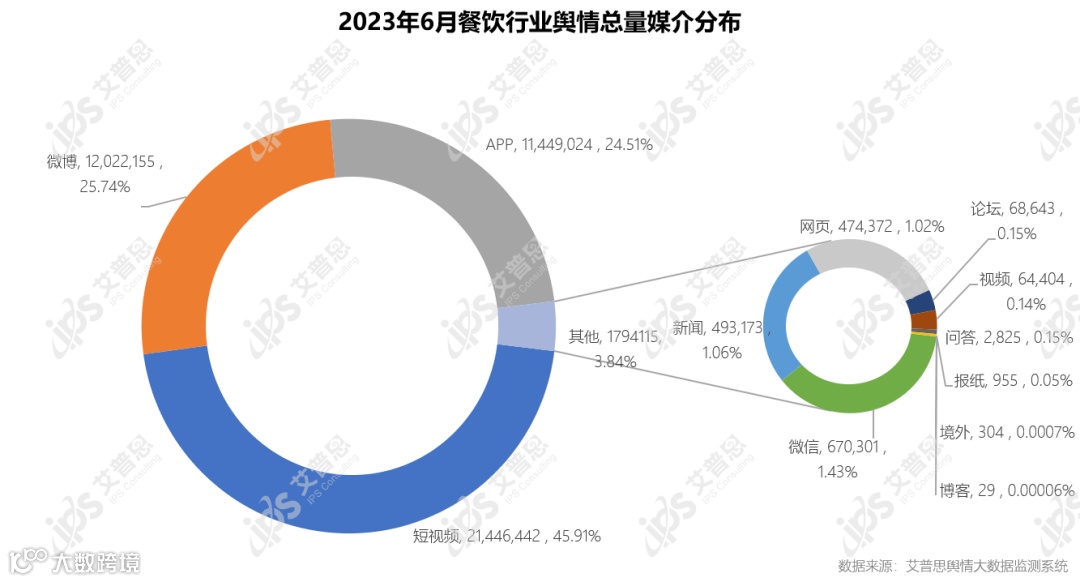 图3:2023年6月餐饮行业舆情总量媒介分布
