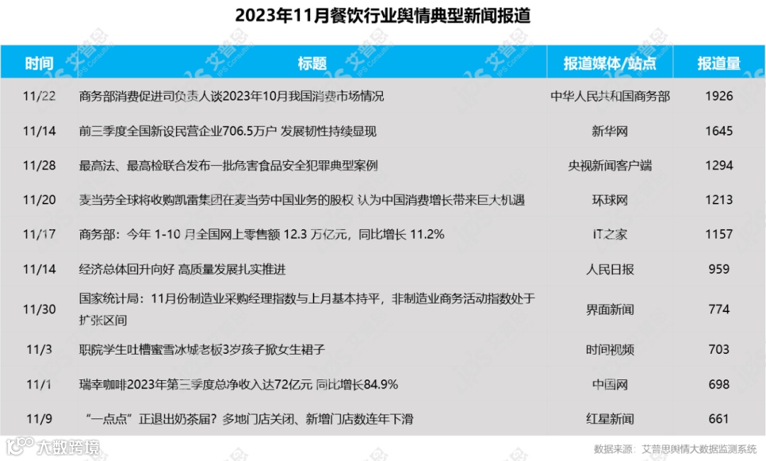 以上内容节选自《艾普思咨询:2023年11月餐饮行业舆情监测报告》(全文25页,约6,977字)。