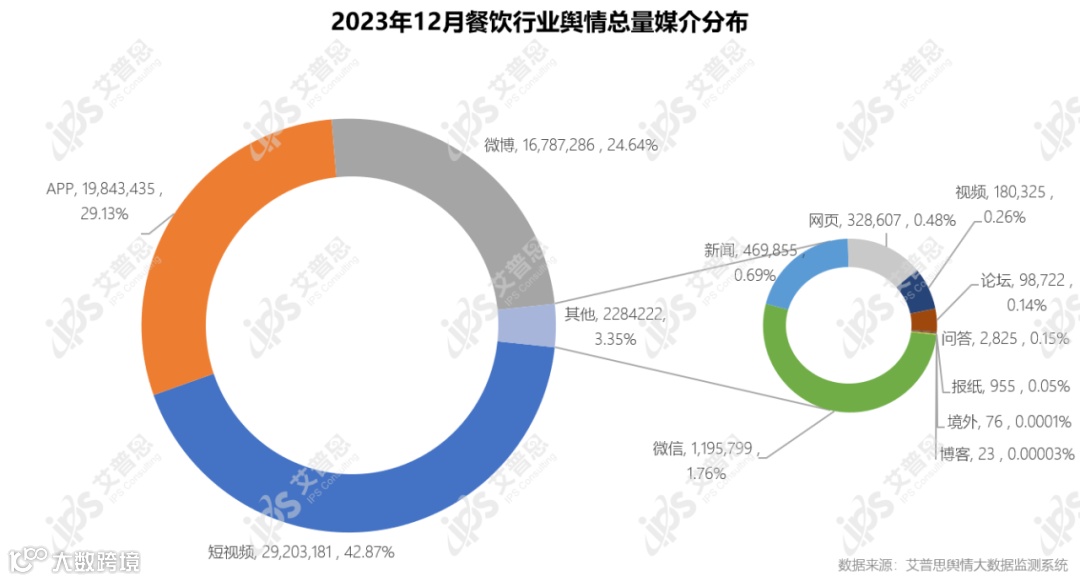 图3:2023年12月餐饮行业舆情总量媒介分布