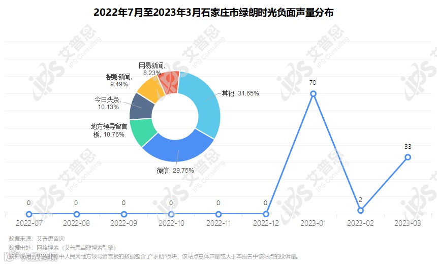 图3:2022年7月至2023年3月石家庄市绿朗时光负面声量分布