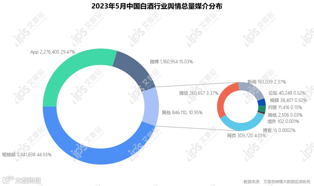图3:2023年5月中国白酒行业舆情总量媒介分布