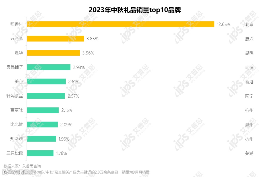 数据显示,销量前十品牌的销量之和占比仅36.16%,可见中秋礼品市场集中度较低,竞争度较高。