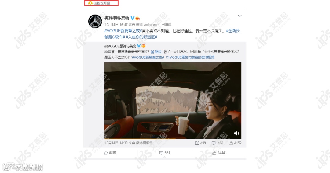 10月14日17时:奔驰官方微博修改权限,转为仅粉丝可见
