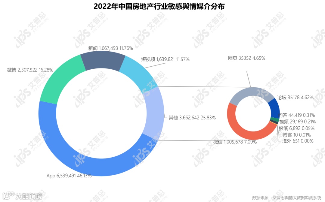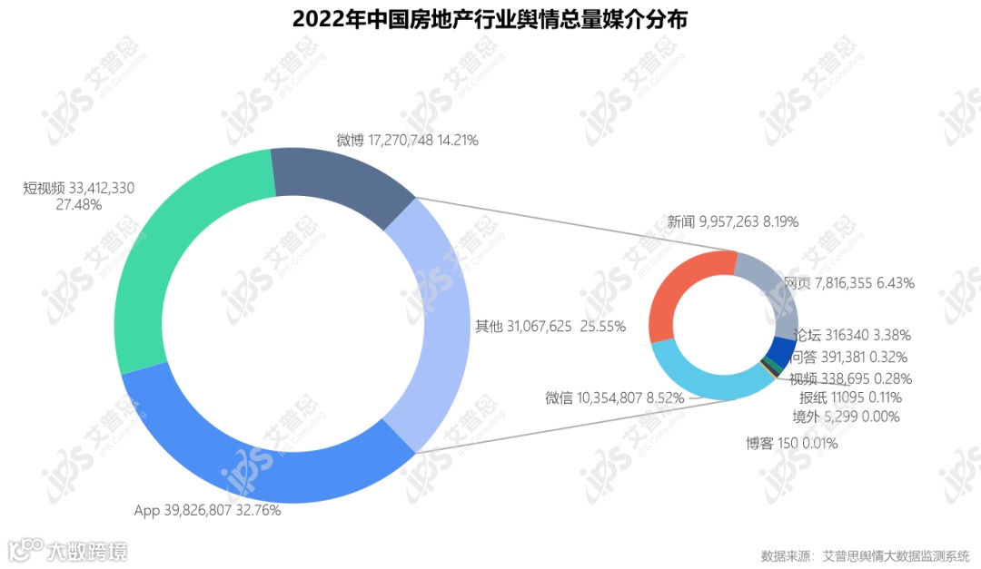 图4:2022年中国房地产行业舆情总量媒介分布