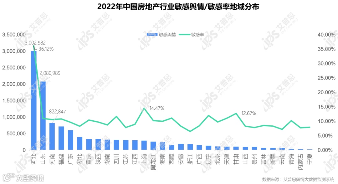 图9:2022年中国房地产行业敏感舆情/敏感率地域分布