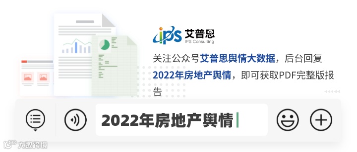 房地产行业舆情2022年1-11月月报及年报均已发布,全部报告可在艾普思咨询官网资讯中心(www.ipscg.com, 点击下方“阅读原文”前往)或在公众号“艾普思舆情大数据”#房地产舆情 标签下查看。