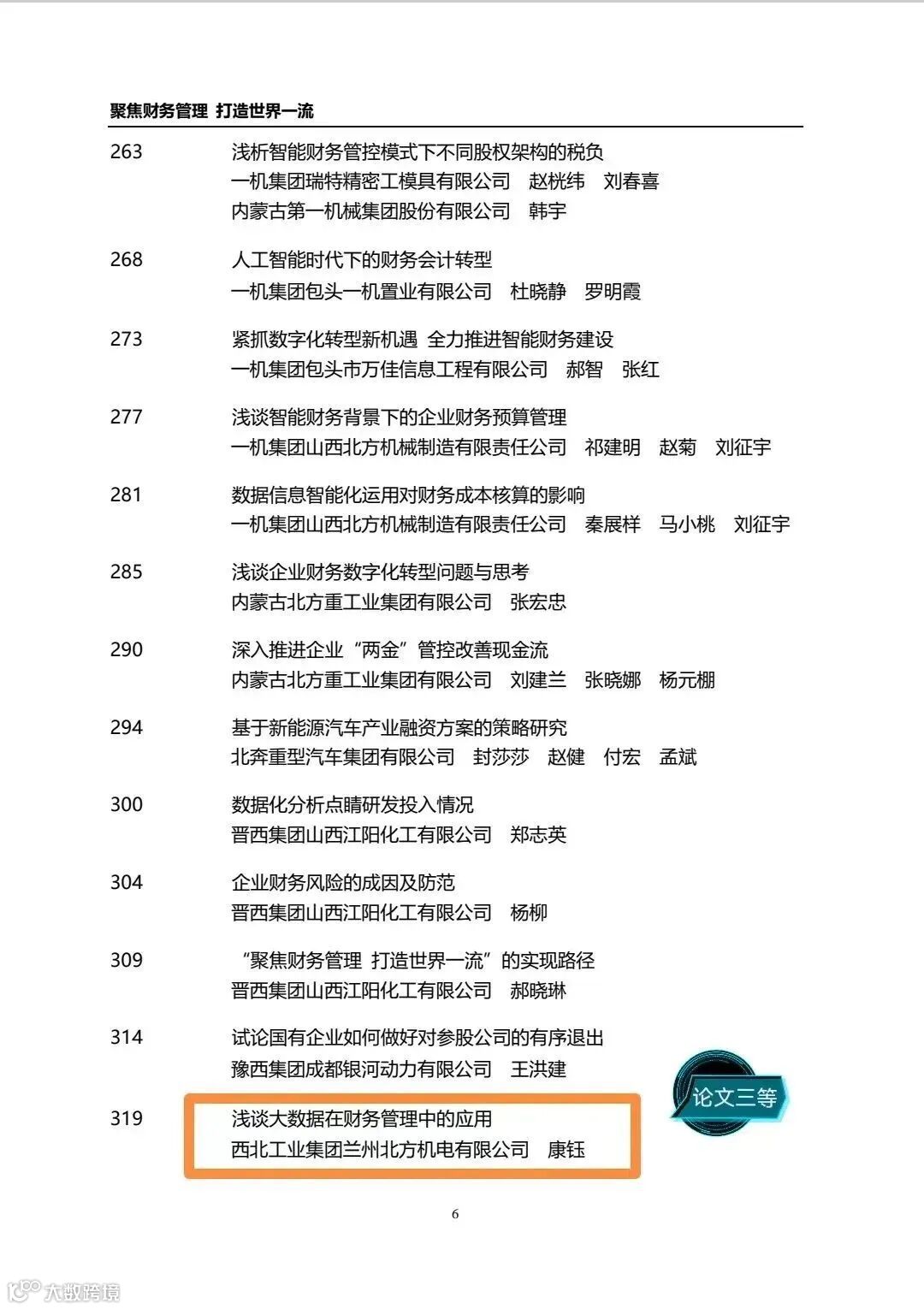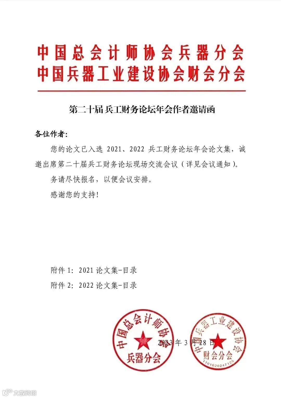 近日,收到中国总会计师协会兵器分会、中国兵器工业建设协会财会分会通知,西北工业集团兰州北方机电有限公司报送的论文分别获得2022年度兵工财务论坛论文二等奖1篇、三等奖2篇,并收录入《2022兵工财务论坛年会论文集》。该论文集每年从兵器工业、兵器装备两大集团的论文中评选出优秀作品收录成册,本次共收录论文82篇。