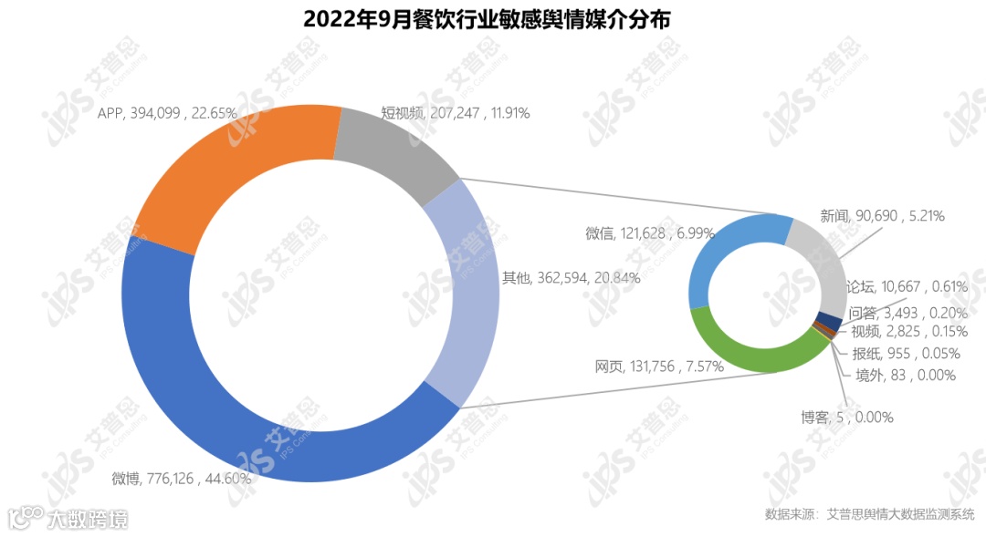 图4:2022年9月餐饮行业敏感舆情媒介分布