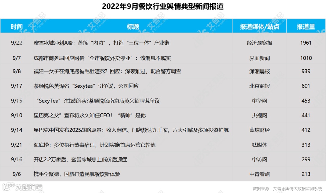 以上内容节选自《艾普思咨询:2022年09月餐饮行业舆情监测报告》(共12页,约3700字)。