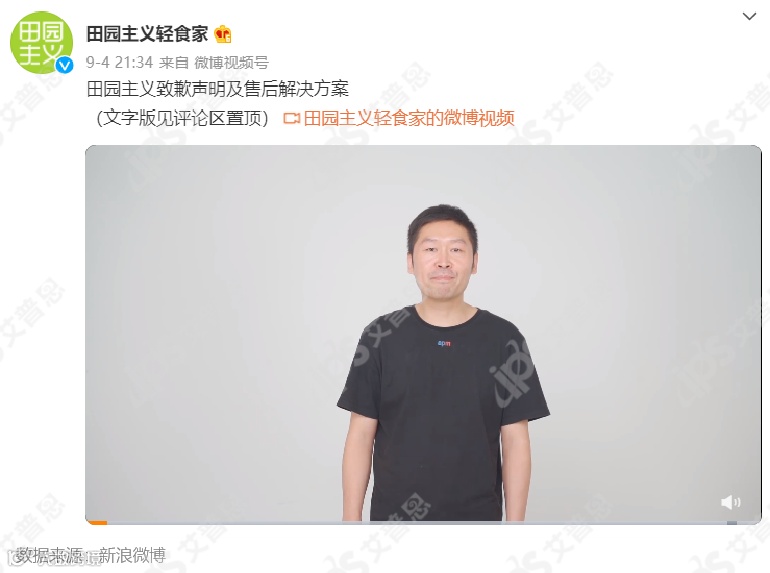 9/4:田园主义创始人发布致歉声明及售后解决方案