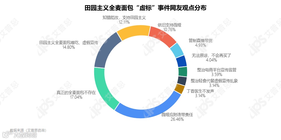 田园主义全麦面包“虚标”事件网友观点分布