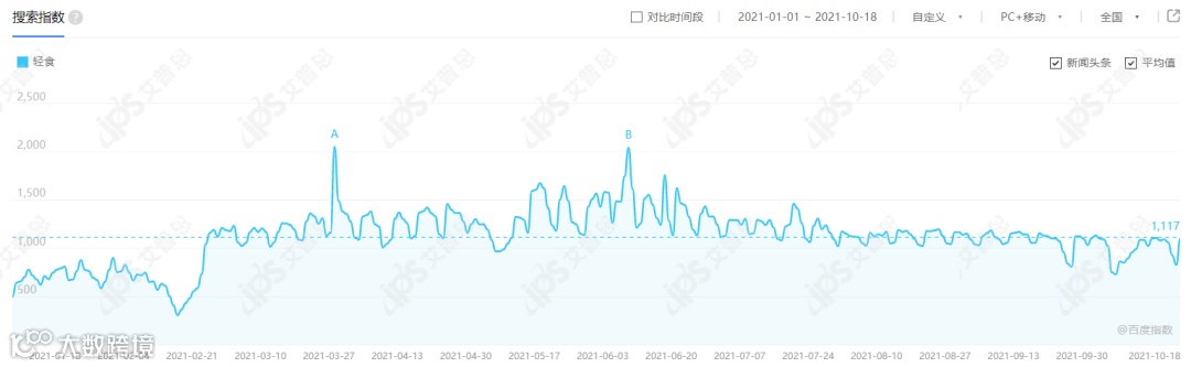 2021年1-10月“轻食”百度搜索表现