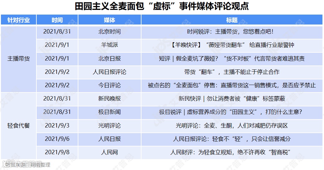 此阶段,除关注田园主义道歉外,部分媒体开始反思直播带货、代餐轻食模式,呼吁加强网络食品准入和监管,规范线上销售模式。
