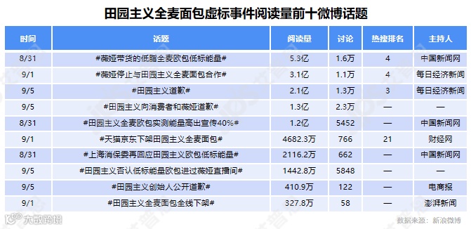 田园主义全麦面包虚标事件阅读量排名前十微博话题