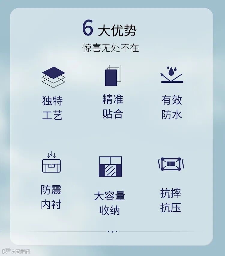 独特工艺 精准贴合 有效防水 防震内衬 大容量收纳 抗摔抗压