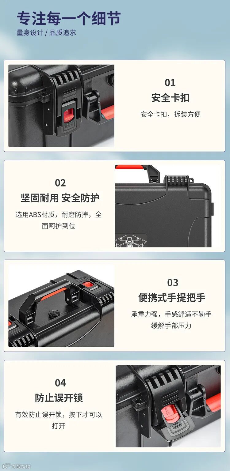 采用ABS材料 使箱子能够抗击 冲撞且不易变形 防摔耐砸 负重能力强 有效保护设备安全