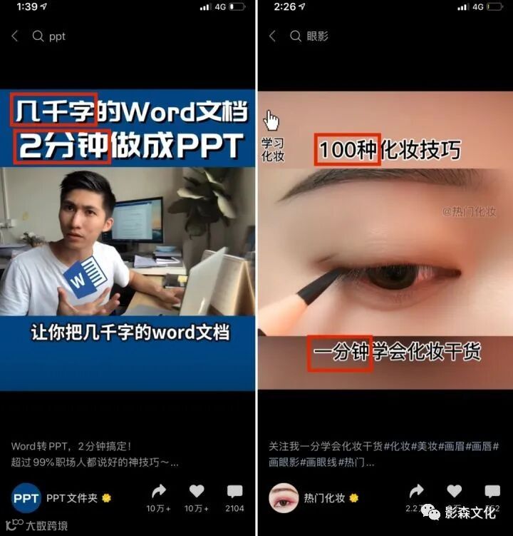 价值获取:这类标题往往出现2组相差很大的数字,比如示例中的“几千字”与“2分钟”、“100种”与“1分钟”,而这种特点会让用户产生“看了就赚到了”、“在很短的时间里获益很多”的价值获取心理。 所以这类标题更适用于教学、技巧向的视频内容,把用户的投入和产出直接量化出来。