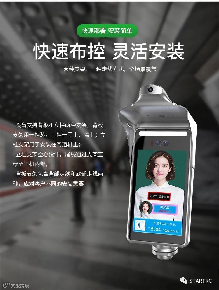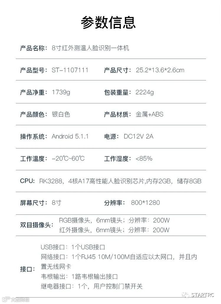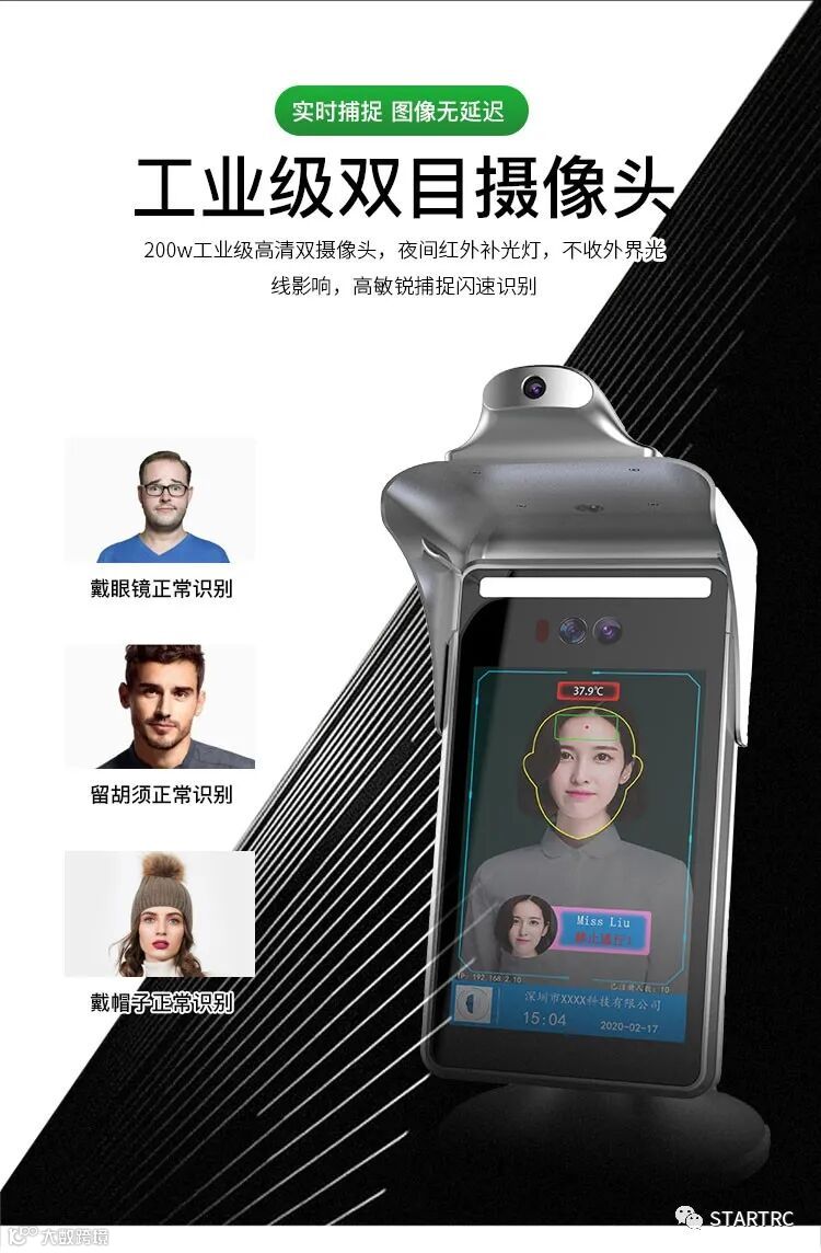 导读:人脸识别测温一体机:利用人脸红外热成像功能测温,高温预警。可识别24000张人脸,自带口罩检测功能,红外活体
