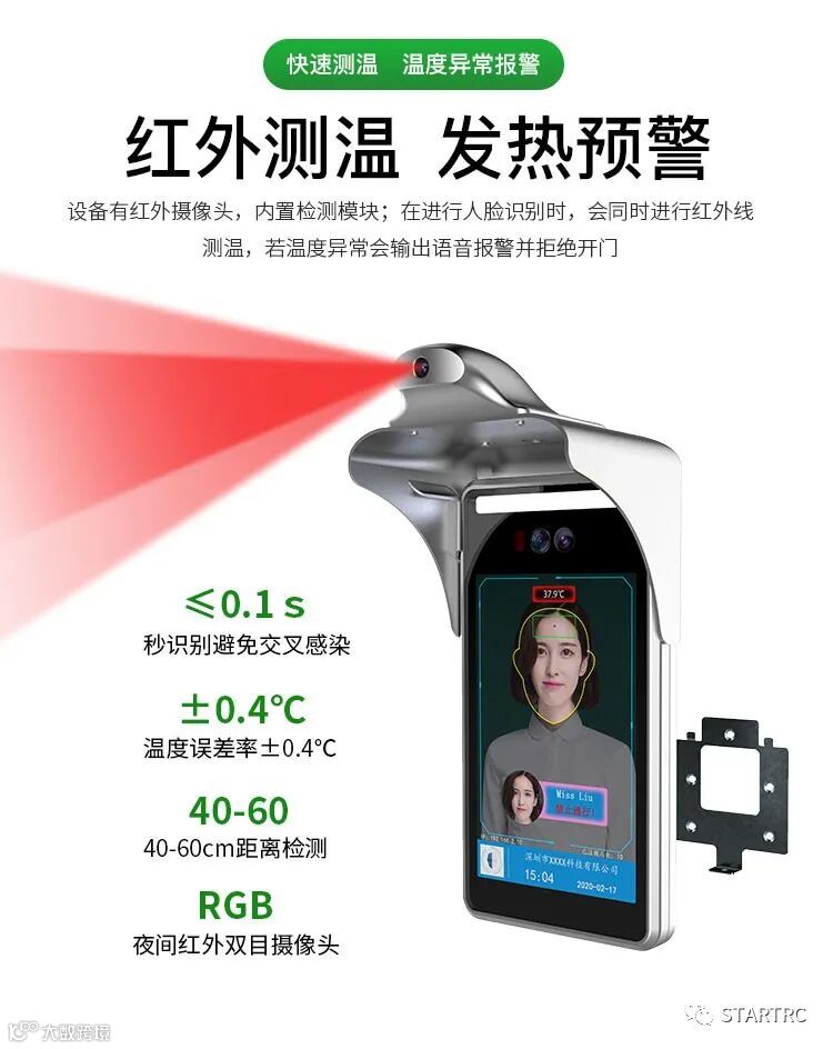 人脸识别测温一体机:利用人脸红外热成像功能测温,高温预警。可识别24000张人脸,自带口罩检测功能,红外活体检测技术,可以在检测过程中判断是否为真人,防止照片以及视频作弊现象。