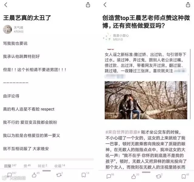 豆瓣鹅组发起了一场“一人一句王晨艺退赛”的呼吁,微博大V们带节奏,扒出小弟弟在14岁时点赞的“三俗”微博。