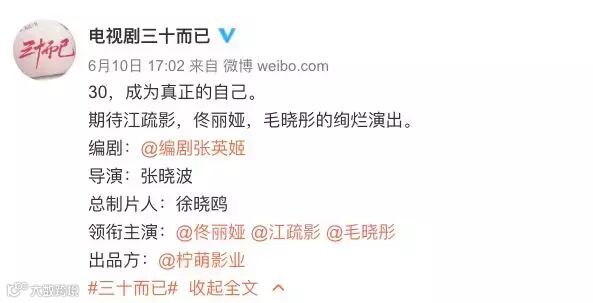 近日,电视剧《三十而已》官宣阵容,江疏影、佟丽娅、毛晓彤主演,