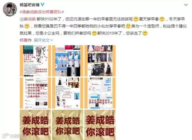 因为给杨幂穿了非本季的衣服,活动造型不如其他同台女星出彩,造型师被粉丝集体喊“滚”。