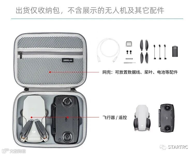 <1>.专为大疆 DJI Mini SE/ Mavic mini 设计,精准开模,体积小容量大,可同时收纳飞行器,遥控器,数据线及其他细小配件