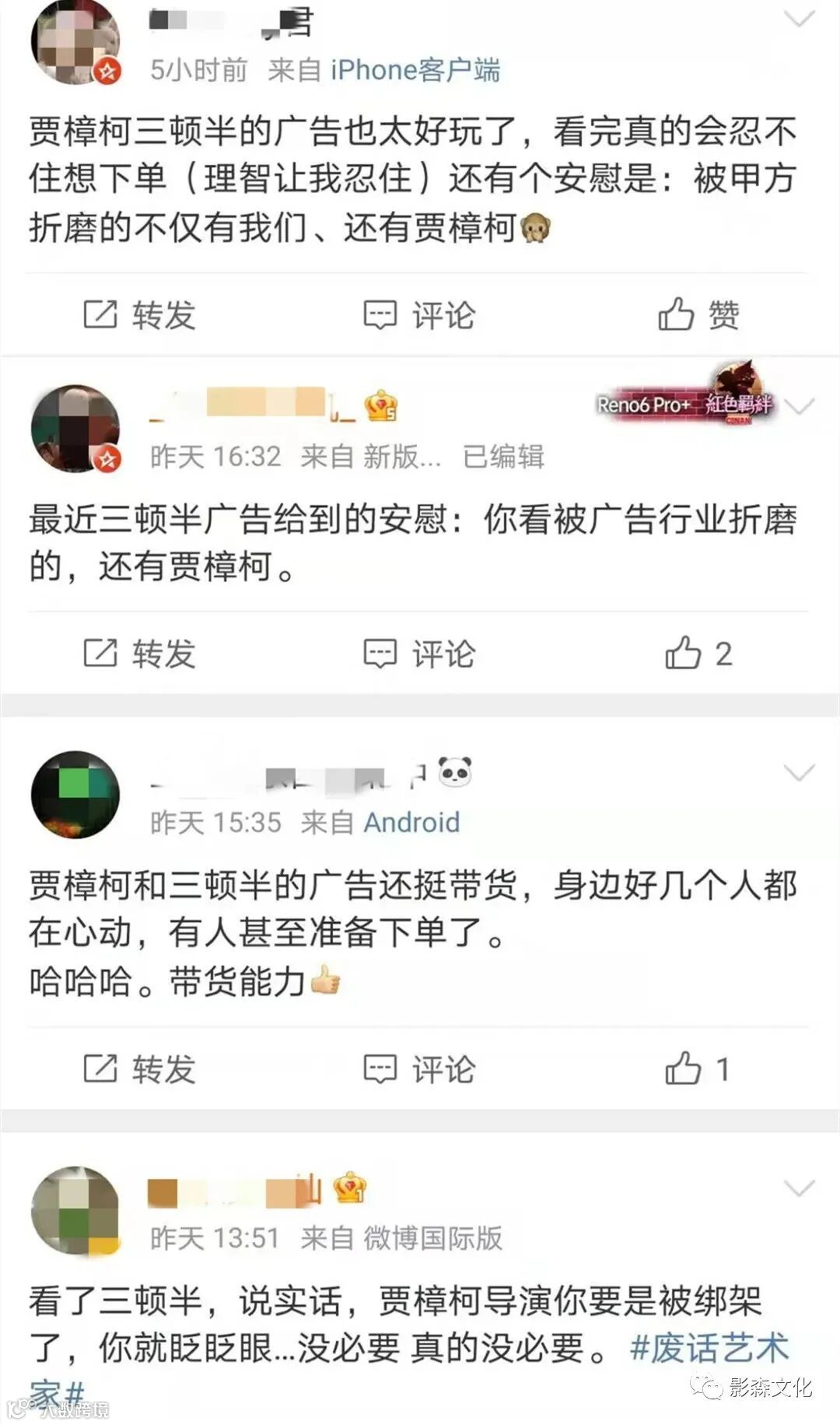 以年轻人为受众主体的“三顿半”可以说太懂现在年轻人的槽点了,现在只要在网络上抛一个甲方乙方“撕逼”的梗,都能引来海量的关注和评论,更何况像贾樟柯这样的大导演,都要忍受来自甲方客户的折磨,让乙方朋友们的代入感瞬间暴增。