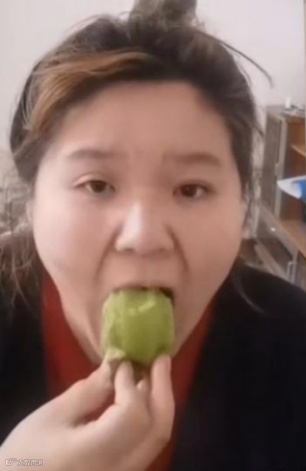 在她口中,猕猴桃叫“猕hotel”,而她吃猕猴桃的视频在某平台上已经有了超过1000万的播放量,引得四方短视频博主争相模仿。
