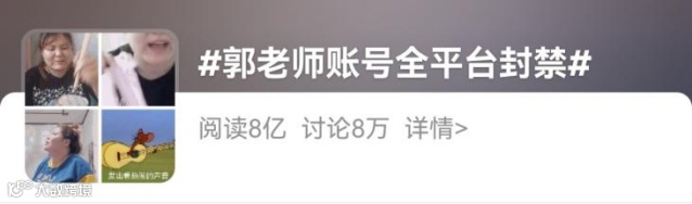 #郭老师账号全平台封禁#话题冲上热搜,累计8亿阅读量,8万讨论量。