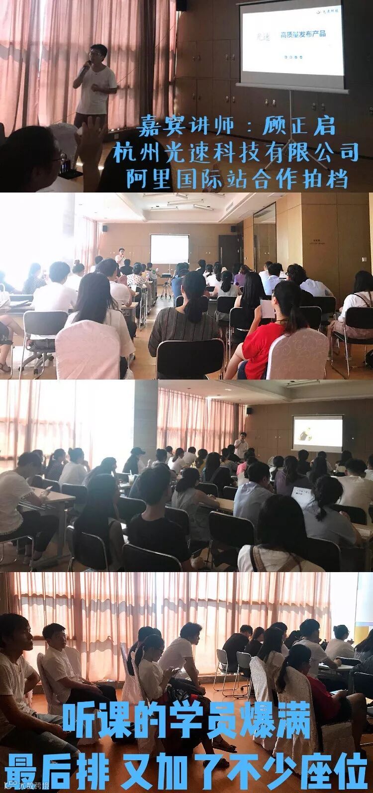 本场我们来到了临安,本场由我们光速科技有限公司的韩佳杰导师为我们的学员带来了外贸直通车的讲解,就直通车中精彩存在的问题也进行了细致的讲解分析,学员都受益匪浅。