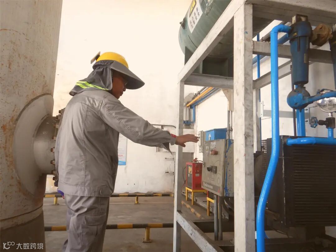 操作员进行吨桶灌桶准备工作