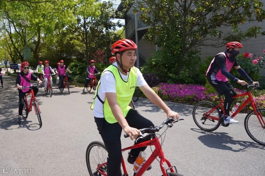 正是惠风和畅,天朗气清的时节,两家单位的青年一早便一同乘车抵达崇明岛东湖,在教练细致耐心的讲解中,青年们纷纷带上头盔,迈开长腿,跨上公路车跃跃欲试。