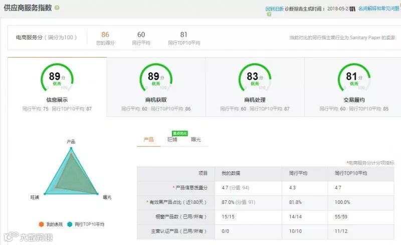 商机获取分为总访客数、点击率、总商机数三部分,通过各项的提升拉高总体分数。
