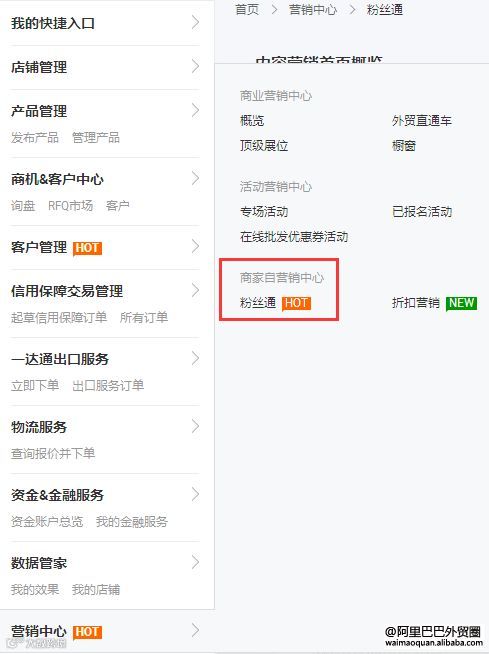 2. 开通入口:主账号登录 MA 后台 → 营销中心 → 粉丝通 → 即进入开通页面。