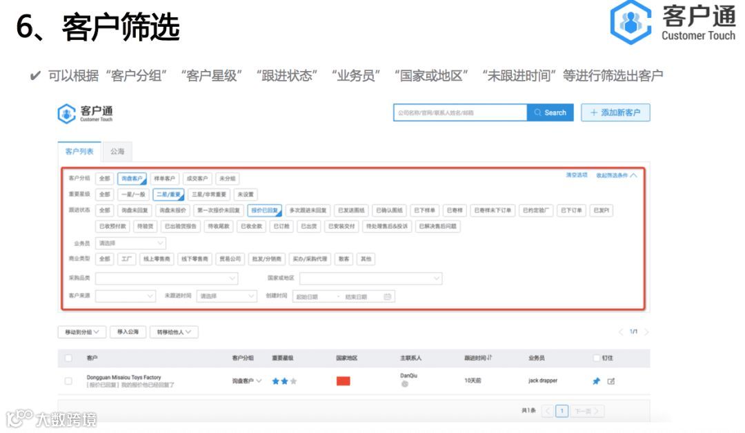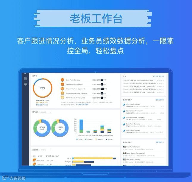 1)可以全盘了解业务员客户跟进和盘活数据情况,让你轻松了解业务员的过程数据和结果指标