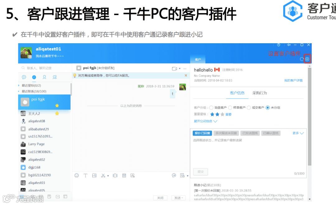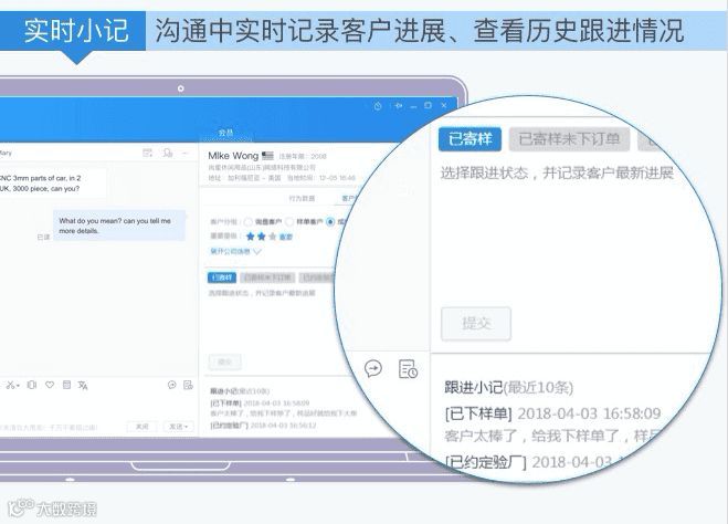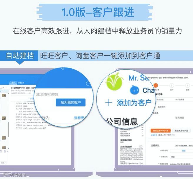 2.无线卖家工作台客户跟进插件,可以在无线卖家轻松跟进和管理客户。