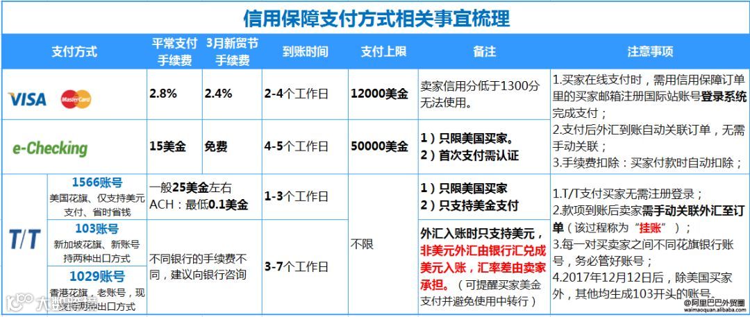 1)TT支付需要供应商手动将资金挂账到订单。(各种支付方式及相关注意事项见下下图)