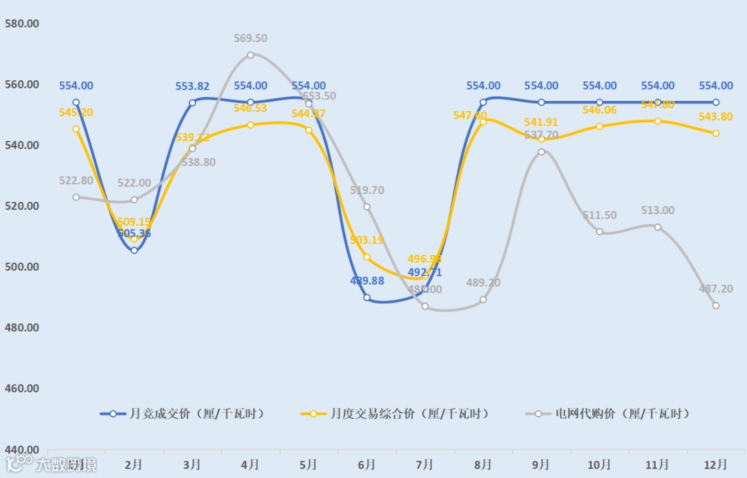 月竞成交价、月度交易综合价、电网代购价